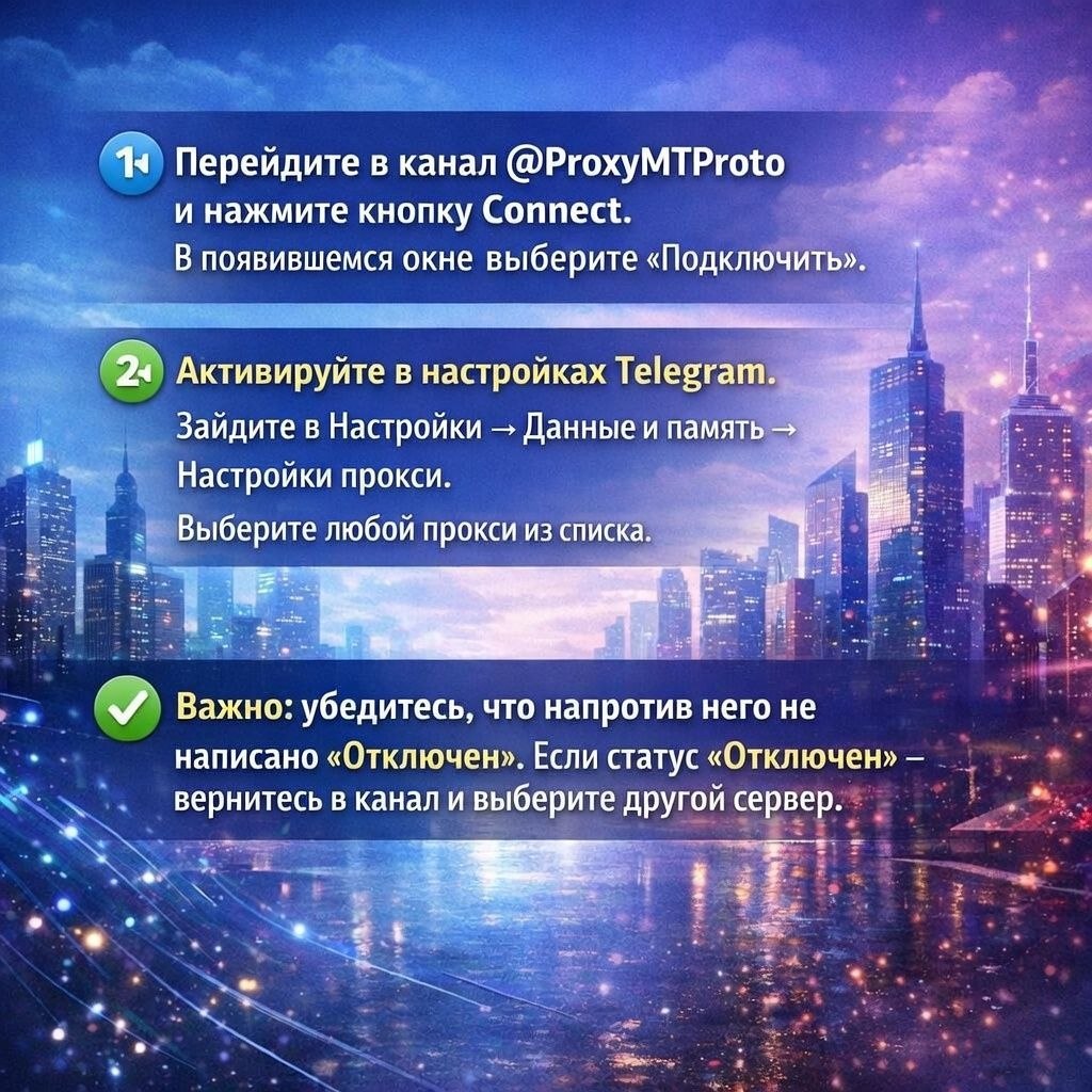 Твой удобный прокси: https://t.me/ProxyMTProto