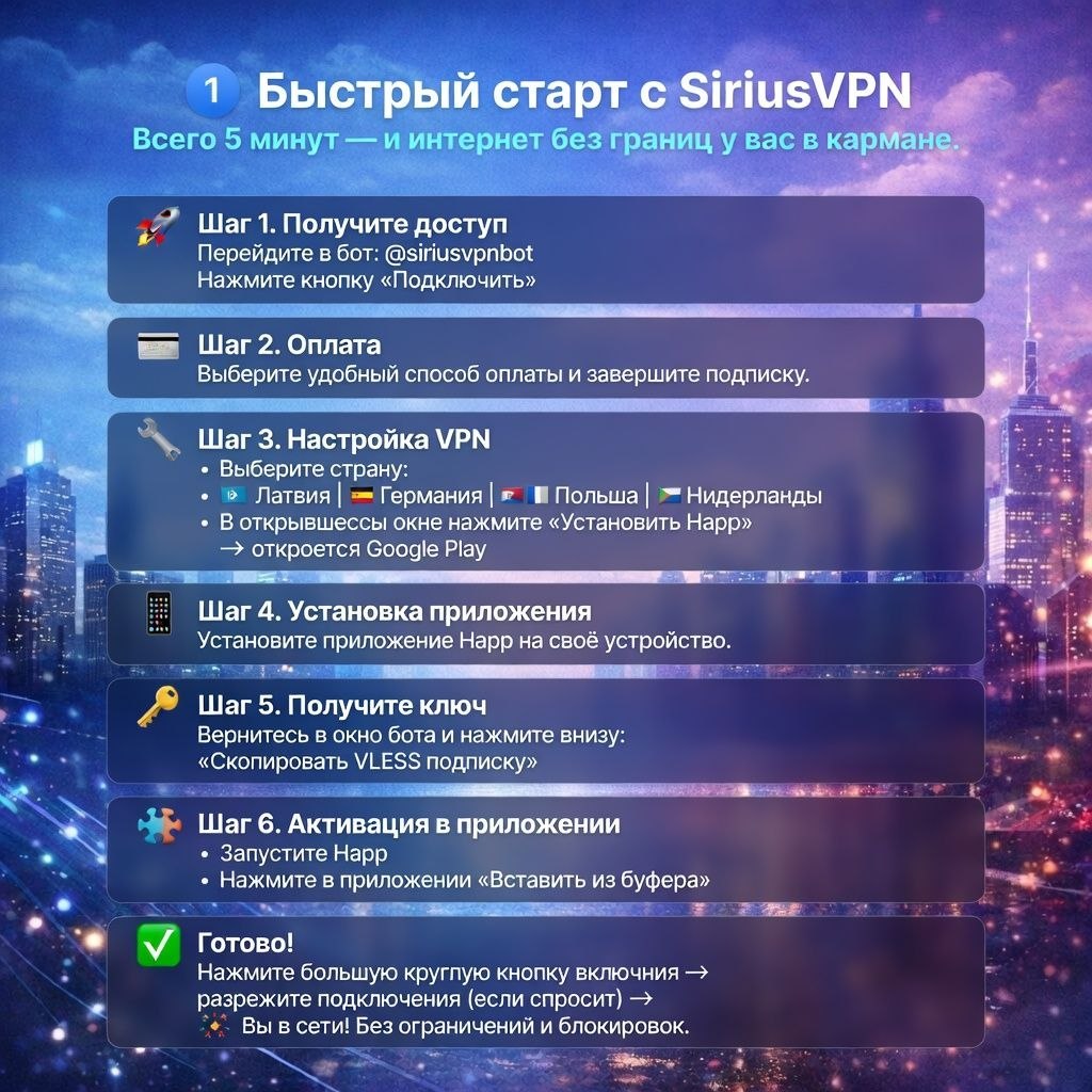 Настраивай ВПН и обходи блокировки: https://t.me/siriusvpnbot